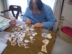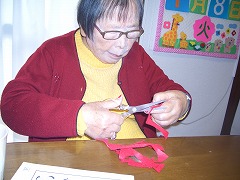 飾り作りに取り組まれ、