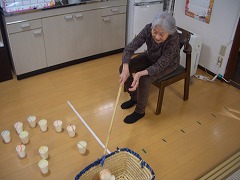 紙コップ釣りのレクで 盛り上り、